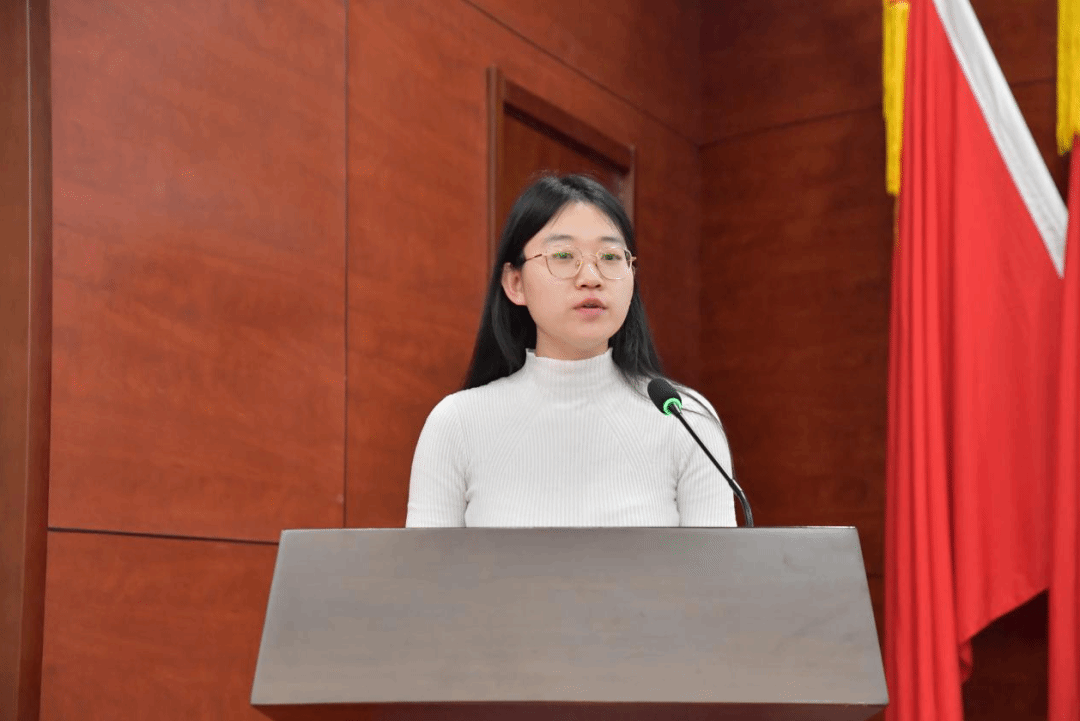 艺术与传媒学院2022级视觉传达设计1班的王梦悦作为学生代表分享了大学三年来对思政课的深刻认识,并表示作为新时代的青年大学生,要上好每一堂思想政治理论课,提高政治站位,感党恩、听党话、跟党走;同时还要上好社会实践的“大思政课”,把爱国情、强国志转化为报国行,在社会课堂中受教育、长才干、作贡献,为实现中华民族伟大复兴的中国梦贡献智慧和力量。