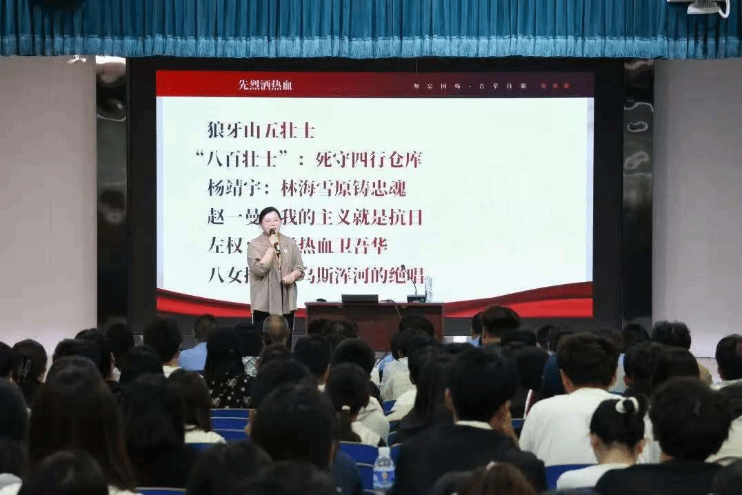 马克思主义学院教师范凯轩以时代发展为主线,为学生从九一八事变、抗战精神、九三阅兵解读了中华民族迎来了从站起来、富起来到强起来的伟大飞跃。同时以AI对话的形式让学生明确,回顾历史是以史为鉴,鉴往知来;是以史为师,承继先烈;是以史明志,开创未来。