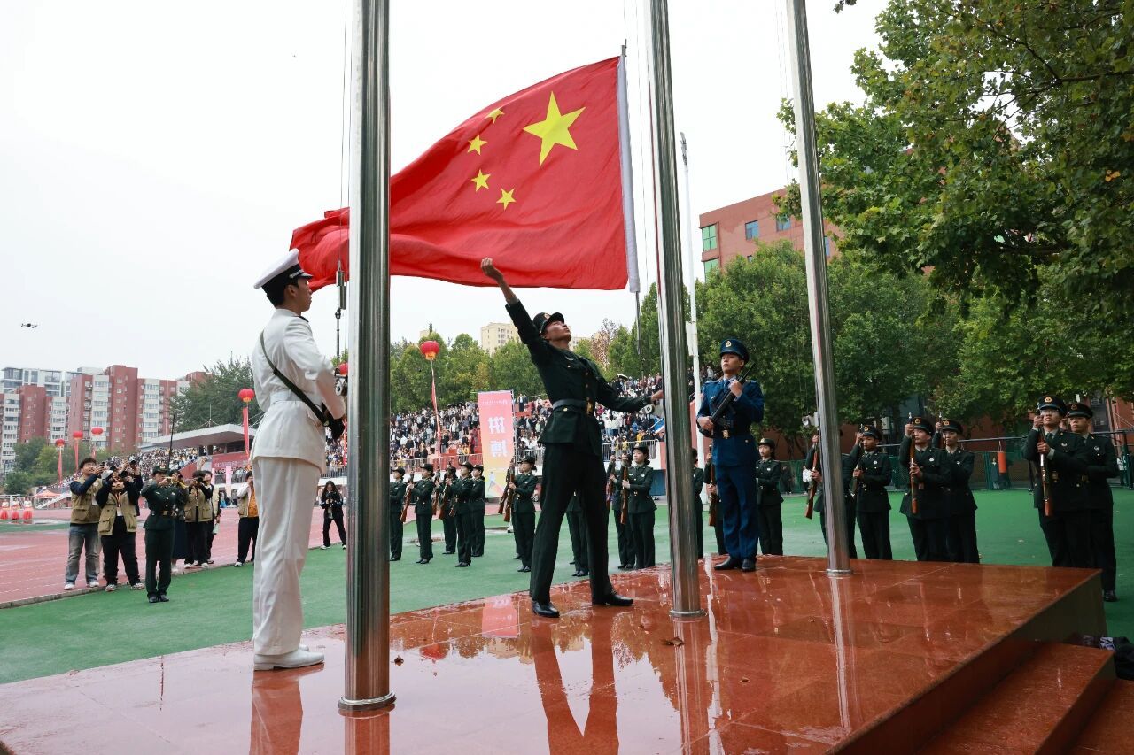 入场式结束后,全体人员面向国旗,举行庄严的升国旗仪式。