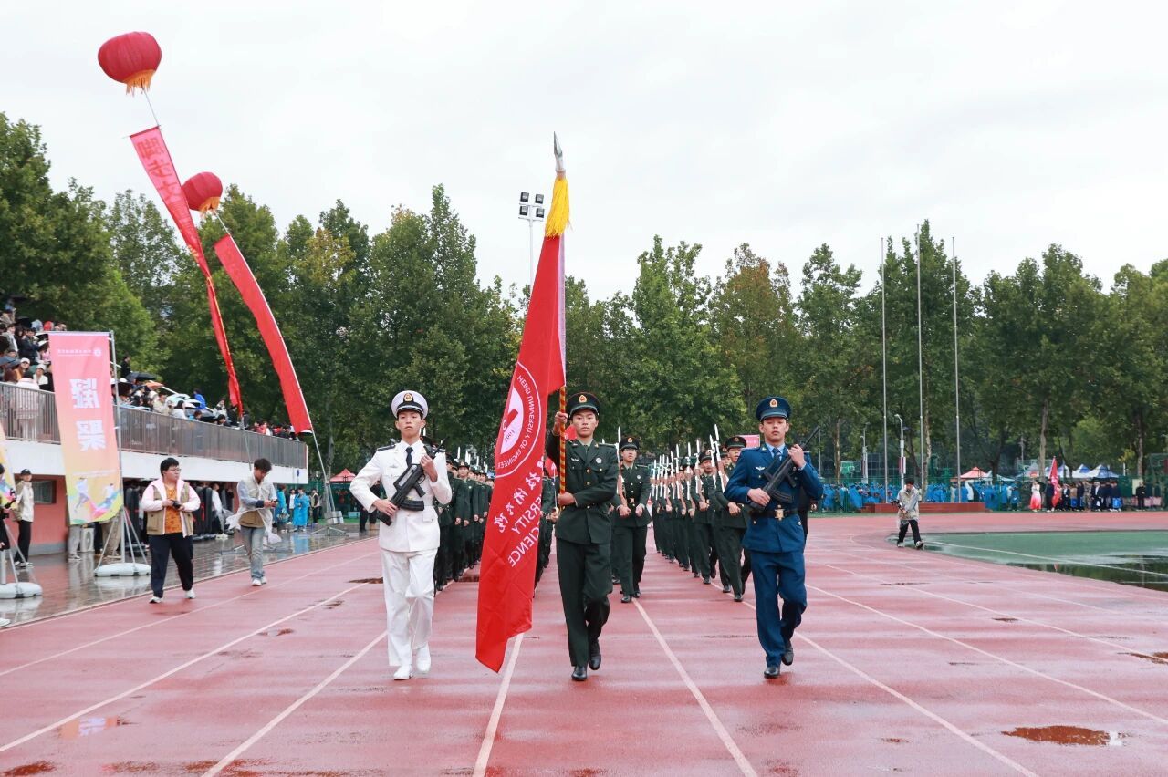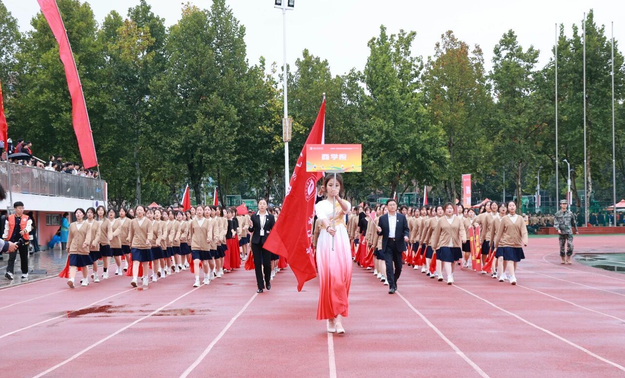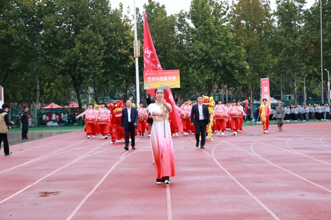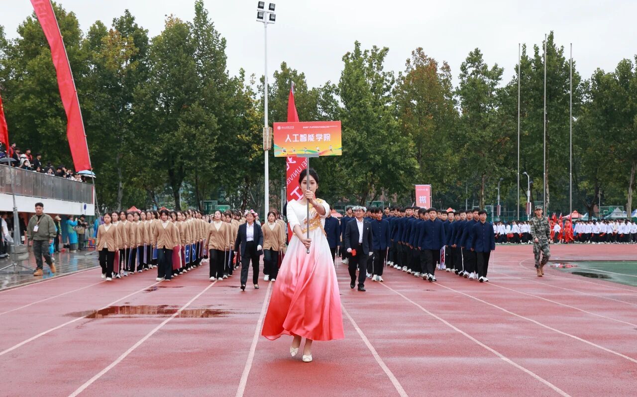 开幕式在激昂的《运动员进行曲》中正式开始。国旗护卫队率先入场,他们步伐铿锵,身姿挺拔,目光如炬,展现了我校国旗队庄严威武的气势。紧随其后的是校旗方阵与各学院运动员代表方阵,他们精神抖擞、意气风发,以掷地有声的口号和各具专业特色的表演,展现了河工人昂扬进取的精神风貌。由学校教职工代表组成的教职工方队步伐沉稳、神采奕奕,展现了新时代教育工作者笃行不怠的使命担当与育人风采。