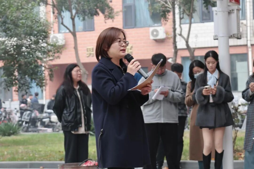 马克思主义学院杨小东老师结合国内重大火灾案例,进行了深度剖析,并将消防安全的重要性从个人层面提升至总体国家安全观的战略高度,深刻阐述了维护消防安全对于社会稳定与国家长治久安的深远意义。网络空间安全学院韩红老师则立足校园生活实际,向全体学生提出了具体而明确的消防安全要求。她重申了宿舍用电规范、消防设施爱护与逃生技能学习的重要性,并要求大家将“安全第一”的原则切实转化为日常行为习惯,做到知行合一,共同维护校园安全。