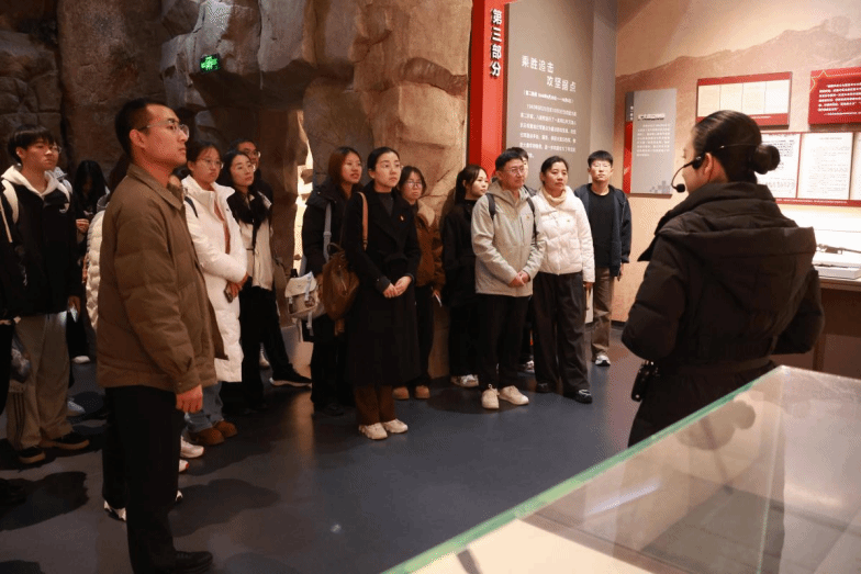 随后,在讲解员的引导下,全体师生党员怀着无比崇敬的心情有序参观各展厅。一幅幅定格历史的珍贵图片、一件件镌刻沧桑的实物展品、一段段翔实的文献资料,再辅以逼真的场景复原与多媒体演示,将烽火连天、全民抗战的峥嵘岁月生动重现。大家沉浸式感悟百团大战的时代背景、艰难决策历程、各阶段战况及深远历史意义,无不被革命先辈为民族独立、人民解放而展现出的不畏强敌、不怕牺牲、英勇斗争的英雄气概,以及矢志不渝的革命信念深深震撼、动容。